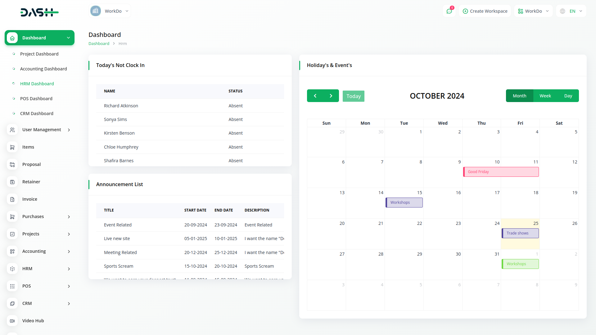 This comprehensive feature facilitates the activities of HR. It is easy to maintain a record of promotions, transfers, work trips, terminations, warnings, and other important aspects of HR.